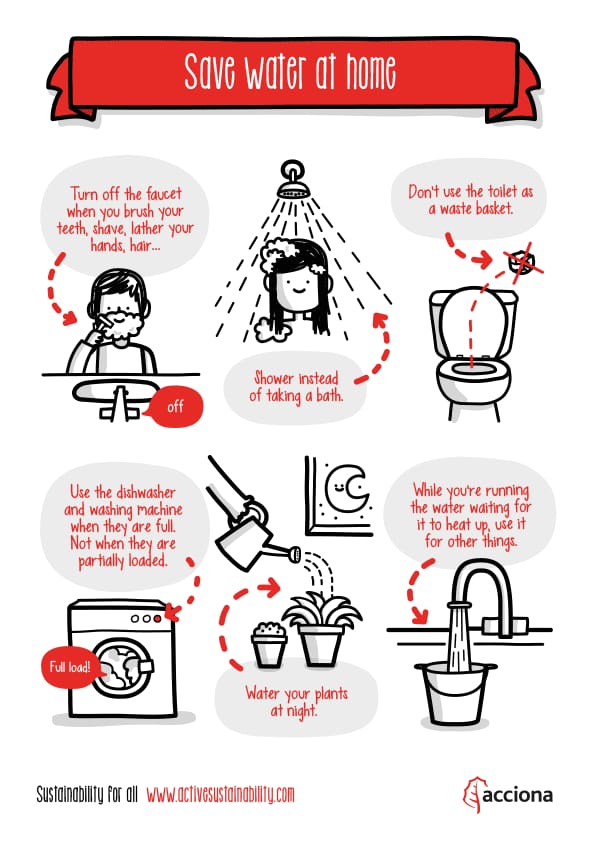 You must remember to use a broom or rags to clean the floor instead of using water. Buying energy-efficient appliances such as bathtubs, sink systems, etc. for your daily needs can save a lot of water. fill your glass with water only as per your need, while serving for kids also serve them in less amount. Try to use small bottles of water to serve in weddings and parties. While washing or reffiling pots don't throw that water, instead use it to water plants.